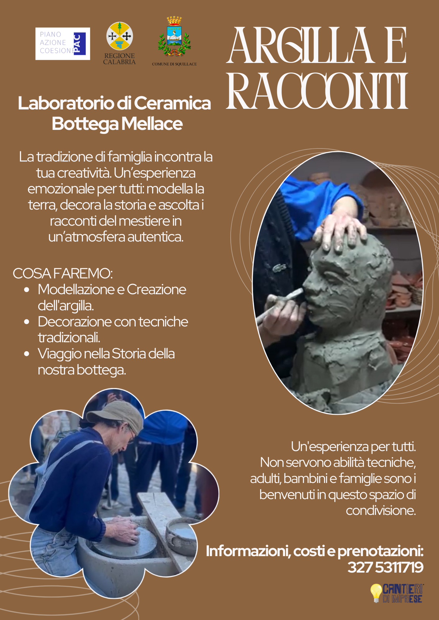 Attraverso attività pratiche di lavorazione dell’argilla — dalla modellazione alla decorazione — i partecipanti potranno realizzare manufatti ispirati ai simboli e ai testi della tradizione di Cassiodoro, scoprendo da vicino il valore del lavoro artigiano e dei saperi tramandati nel tempo.